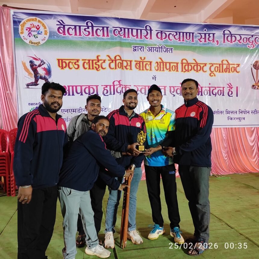 किरंदुल। बैलाडीला व्यापारी कल्याण संघ, किरंदुल द्वारा आयोजित रात्रिकालीन क्रिकेट फ्लड लाइट प्रतियोगिता को क्षेत्र में एक सराहनीय और प्रेरणादायक पहल के रूप में देखा जा रहा है। व्यापारिक वर्ग द्वारा खेल क्षेत्र में इस प्रकार का भव्य आयोजन न केवल प्रशंसनीय है, बल्कि यह सामाजिक उत्तरदायित्व की भावना का भी उत्कृष्ट उदाहरण प्रस्तुत करता है।