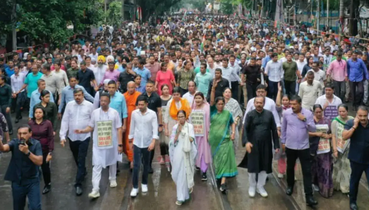 बंगालियों से भेदभाव के खिलाफ ममता बनर्जी का पैदल मार्च, कोलकाता की सड़कों पर उमड़ी भीड़ कोलकाता | 16 जुलाई…