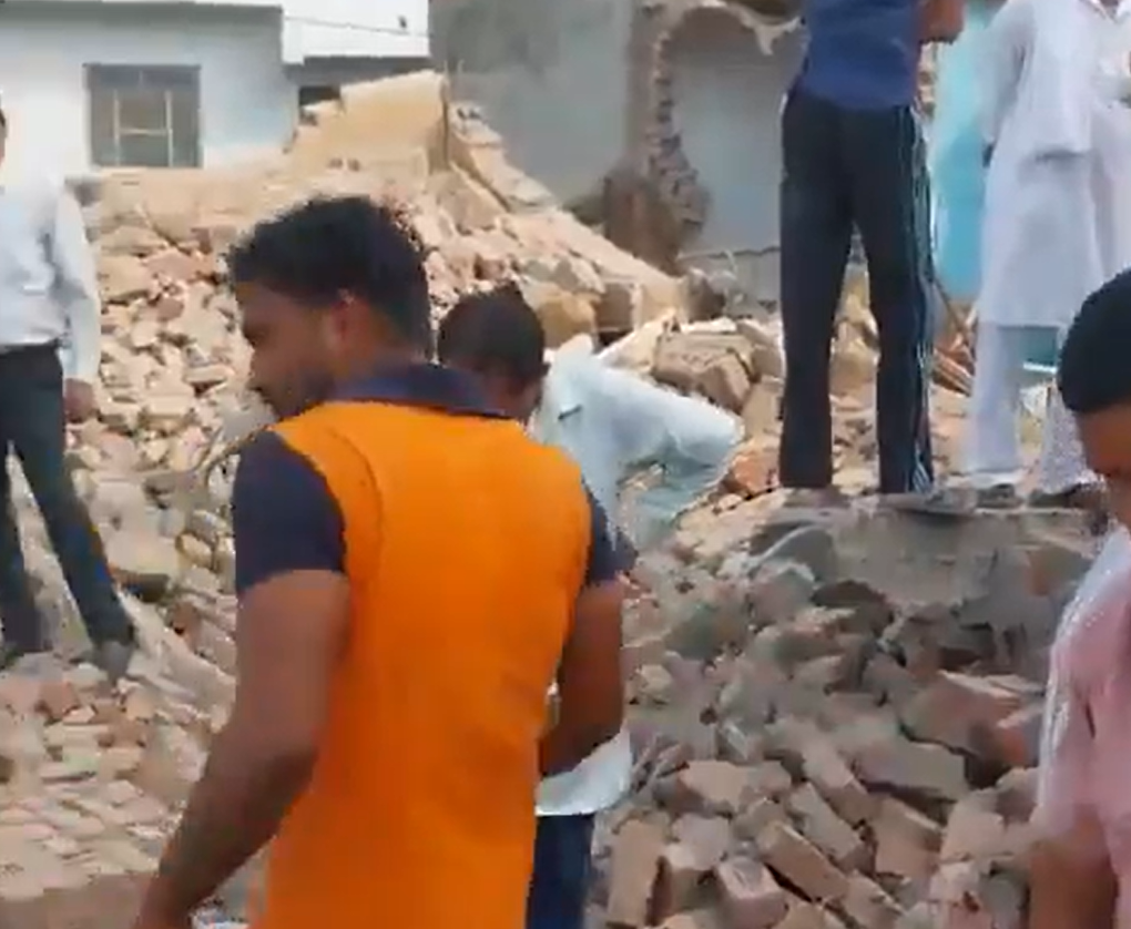 ग्रेटर नोएडा: तेज बारिश में ढहा निर्माणाधीन चार मंजिला मकान, बड़ा हादसा टला