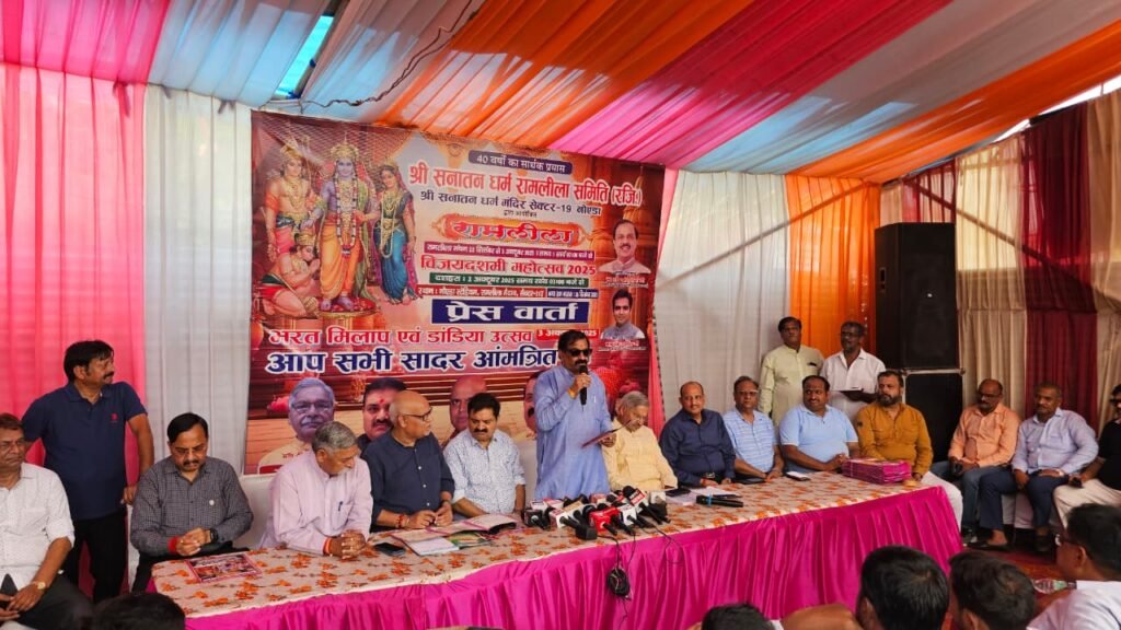 श्री सनातन धर्म रामलीला समिति, नोएडा द्वारा प्रेसवार्ता को संबोधित करते हुए समिति के सदस्यों ने बताया कि पिछले 40 वर्षो से निरंतर नोएडा शहर में प्राधिकरण एवं प्रशासन की सहयोग से रामलीला मंचन एवं विजयादशमी महोत्सव का आयोजन रामलीला ग्राउंड, नोएडा स्टेडियम सैक्टर 21ए नोएडा में करते आ रहे है।