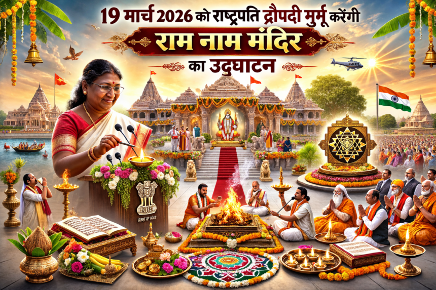 अयोध्या। अयोध्या में स्थित राम मंदिर अयोध्या परिसर में 19 मार्च 2026 को एक विशेष धार्मिक समारोह आयोजित किया जाएगा, जिसमें भारत की राष्ट्रपति द्रौपदी मुर्मू मुख्य अतिथि के रूप में शामिल होंगी। इस अवसर पर राम मंदिर के दूसरे तल पर “राम नाम मंदिर” और श्रीराम यंत्र की स्थापना की जाएगी।