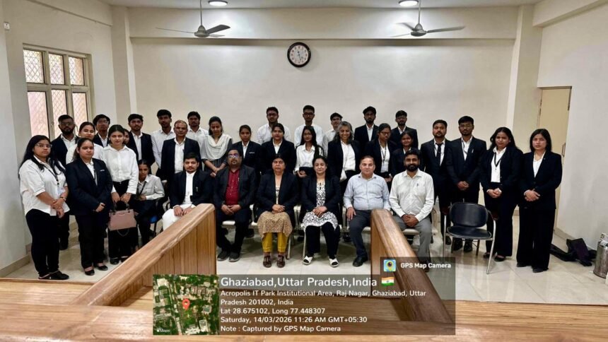 नोएडा। IMS Law College की लीगल एड सोसायटी द्वारा शनिवार को जिला न्यायालय गाजियाबाद में एक शैक्षणिक न्यायालय भ्रमण का आयोजन किया गया। इस भ्रमण में एलएलबी, बीए एलएलबी एवं बीकॉम एलएलबी पाठ्यक्रमों के विद्यार्थियों ने भाग लिया और न्यायालय की कार्यप्रणाली को करीब से समझने का अवसर प्राप्त किया।
